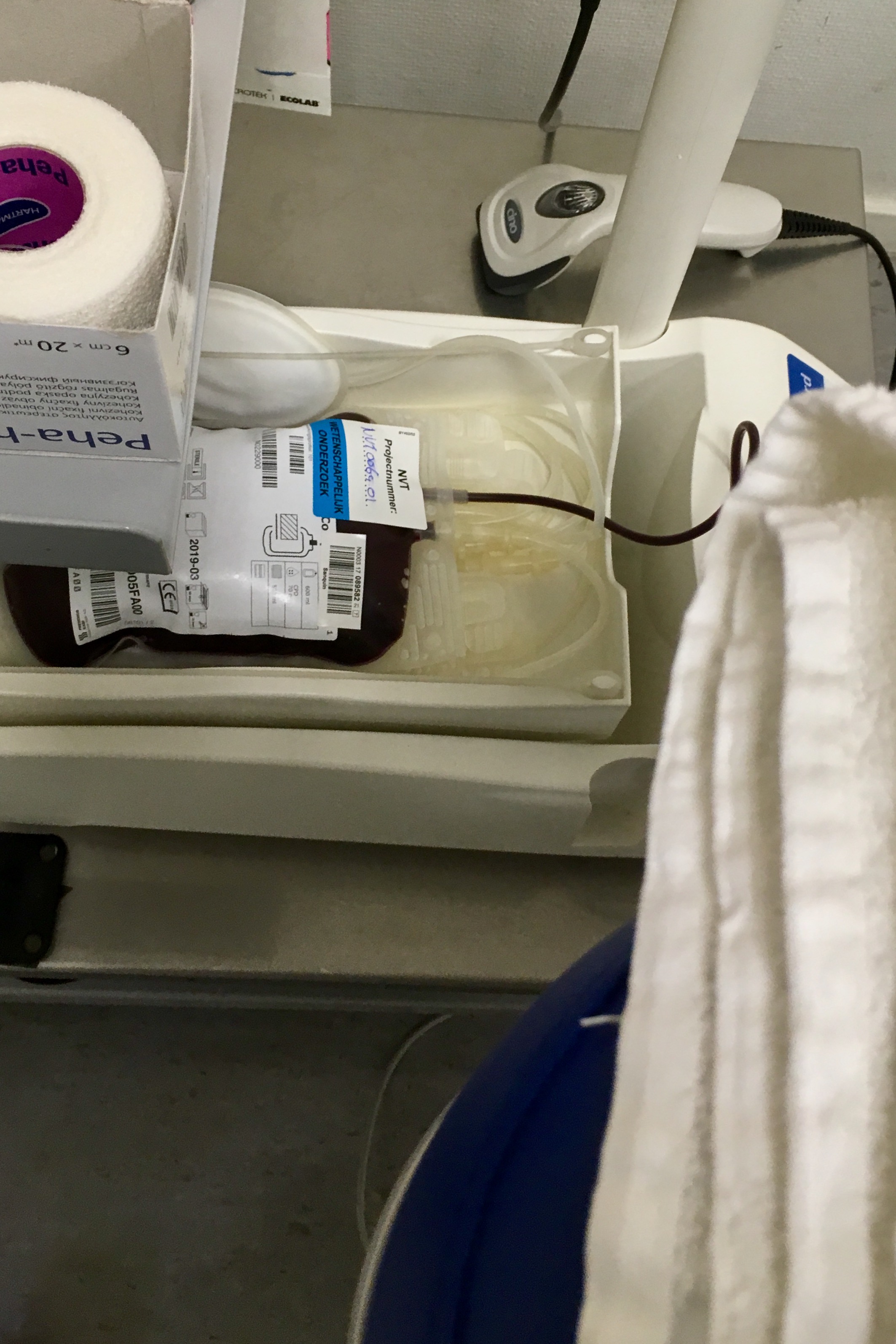 Een snelle rekensom leert dat middelste zo’n 45 weken later, met een gemiddelde van twee keer per week en in het ziekenhuis soms dagelijks, toch minimaal 100 bloedzakjes gedoneerd heeft gekregen.